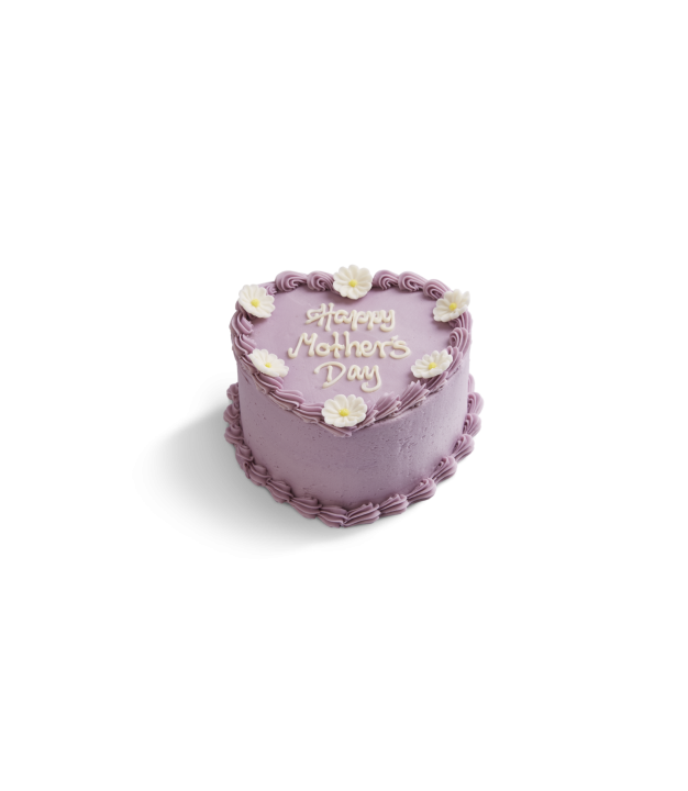Treat mum to a slice of real American baking with our irresistible Lilac Vanilla Heart Cake. Two layers of the lightest vanilla sponge, generously frosted with luscious lilac vanilla frosting. Topped with shell piping and fondant daisies.