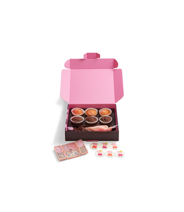 Get ready to get creative with our Peppa Pig Decorating Kit. This Kit is just the ticket for a hands-on, sprinkle-filled Peppa Pig adventure. Get ready to frost 3 fluffy pink vanilla cupcakes and 3 decadent chocolate cupcakes with an assortment of pink vanilla or chocolate frosting, Peppa logos and a jam packed reusable sprinkle case.