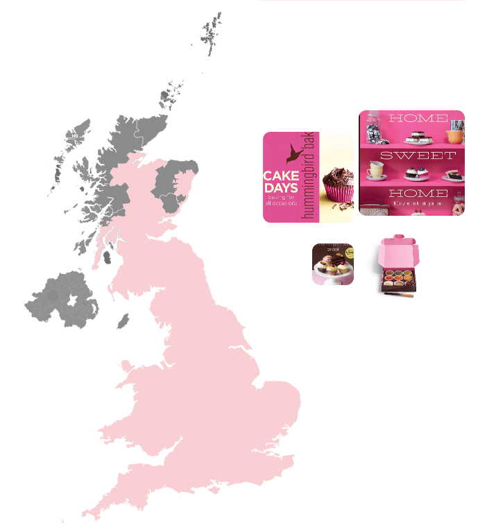 Beyond London, our nationwide delivery brings the joy of The Hummingbird Bakery to every corner of the UK. Send thoughtful gifts, branded merchandise, and cupcake kits to friends and family nationwide.